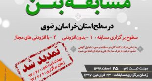 ادامه مطلب »تمدید مهلت ثبت نام مسابقه استانی بتن مقاوم و اقتصادی (نحوه ثبت نام و آئین نامه مسابقات)
